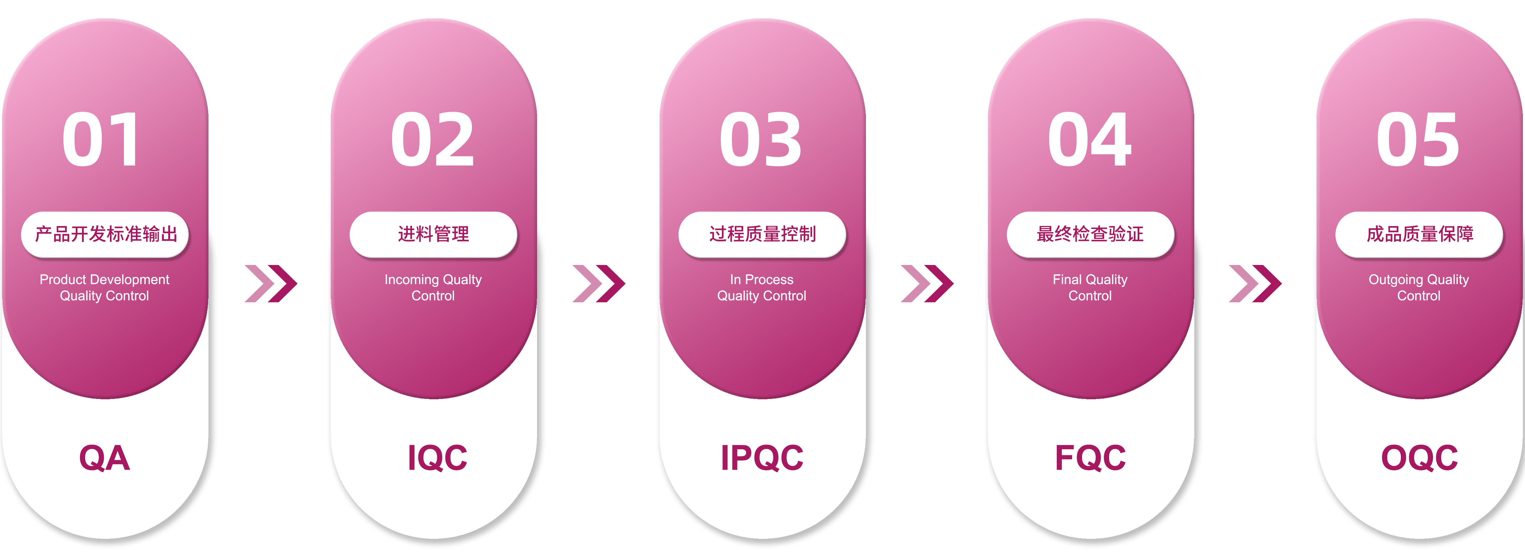 坚持于让客户获得最高标准品质。为此我们专门组建了一支质量保证和控制的专家组团队,以客户需求为核心,严格控制品控流程。从产品前期开发阶段开始进行全面技术评估及全方位的品质测试,并根据产品特性建立体系标准,明确产品控制要求,确保每一款产品都达到超越客户和消费者的期望。